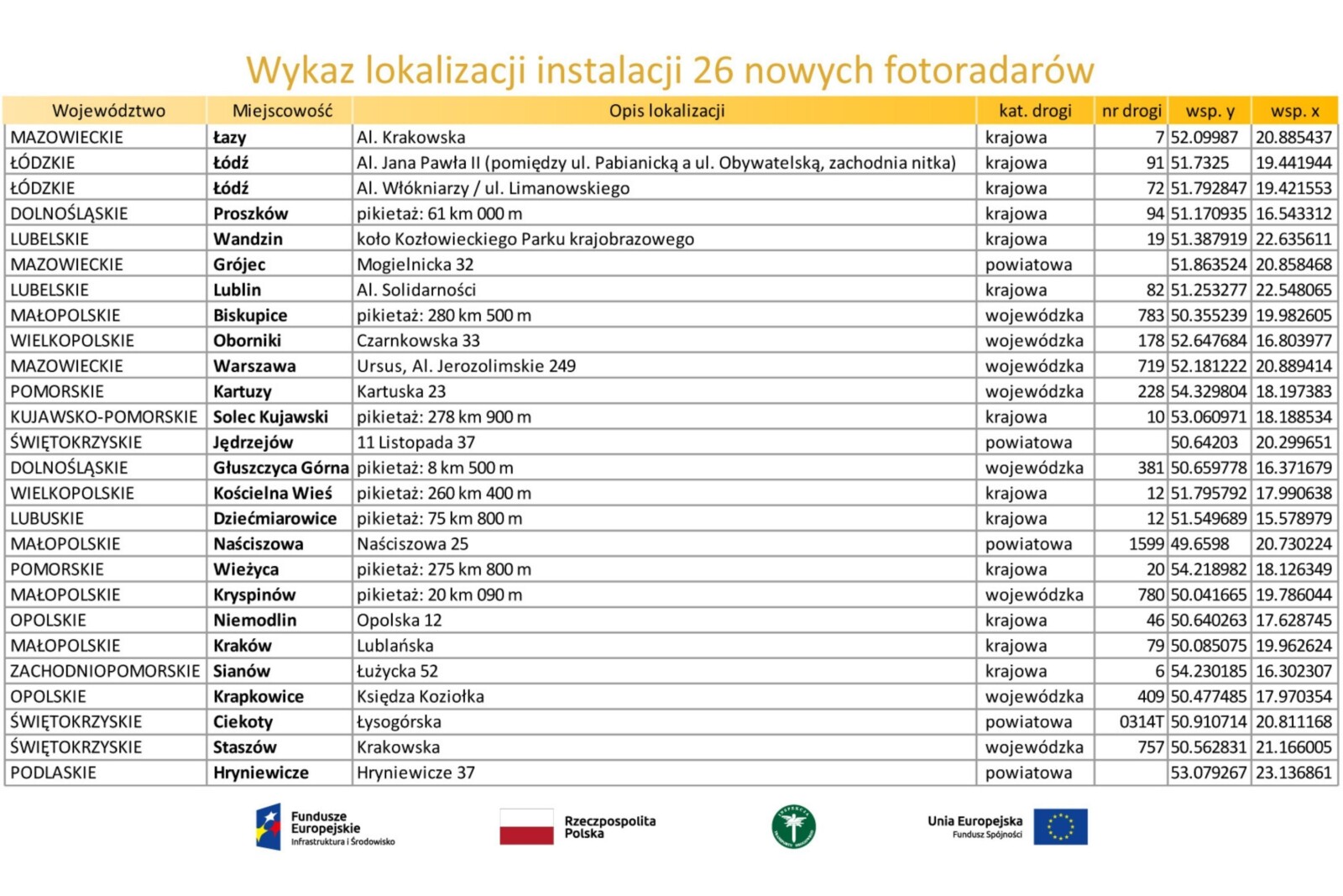 Punkty ustawienia nowych urządzeń wybrano na podstawie analizy przeprowadzonej przez Instytut Transportu Samochodowego w miejscach, gdzie dochodzi do niebezpiecznych zdarzeń drogowych, w tym wypadków ze skutkiem śmiertelnym.