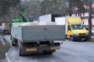 Jak widać na głównym zdjęciu i zdjęciu obok, do przeładowania żółtego Renault Mascott podstawić się musiała trzyosiowa solówka.