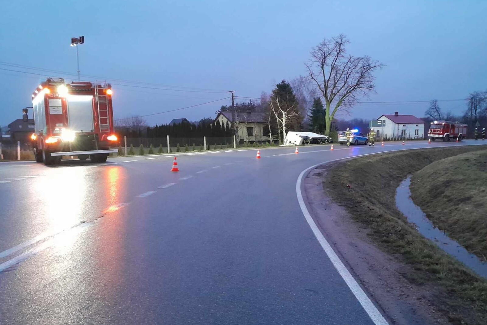 Biała chłodnia wpadła do rowu w niedzielę 28 stycznia, około 5 rano. O zdarzeniu powiadomiono dyżurnego Komendy Powiatowej Policji w Grójcu a na miejsce wysłano strażaków z OSP Boglewice, którzy potwierdzili, że miejscowości Wola Boglewska po Grójcem (woj. mazowieckie) dostawczy pojazd faktycznie wypadł z drogi a kierowca porzucił chłodnię jeszcze przed przyjazdem służb.