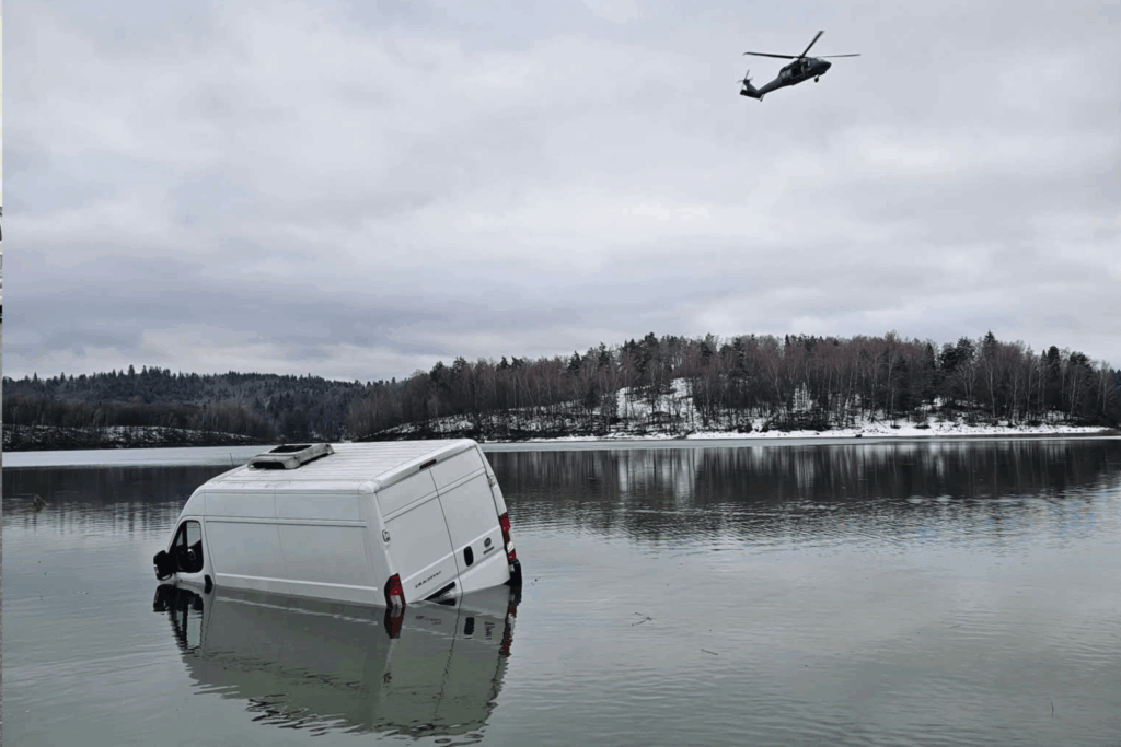 Dziś w Polańczyku kierowca dostawczego Fiata Ducato zaliczył wodowanie w Jeziorze Solińskim. Szczęsliwie nikomu nic się nie stało.