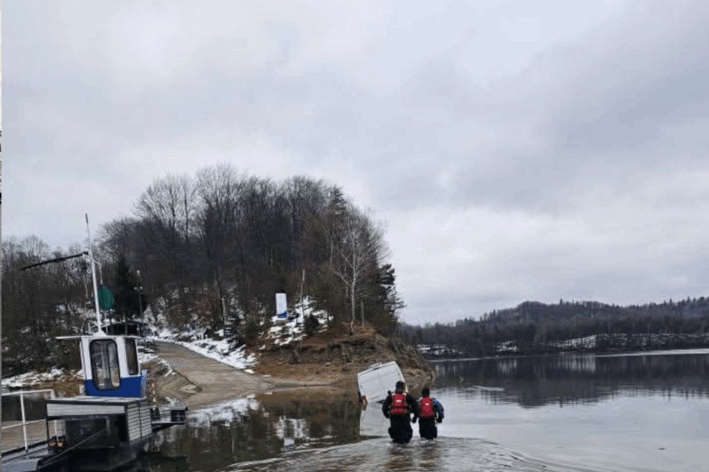 Około godziny 7:20 rano w okolicach przeprawy promowej przy ul. św. Jana doszło osunięcia jednej z płyt podczas przejazdu przez bród. W wyniku tego dostawczy Fiat Ducato przechylił się i zjechał do Jeziora Solińskiego.