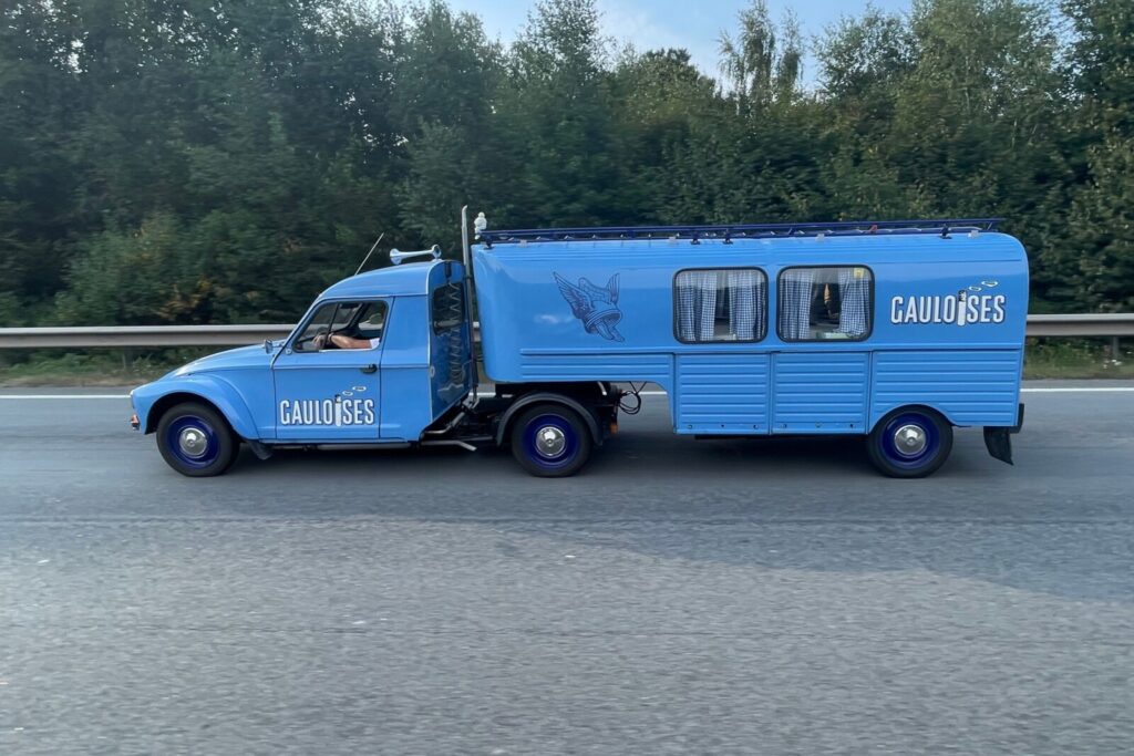Zatem, proszę uprzejmie, rzućcie okiem na tego Citroena Arcadiane ciągnącego za sobą naczepę – spotkać taki zestaw w ruchu zapewne to niecodziennie zdarzająca się okazja. Zazdro!
