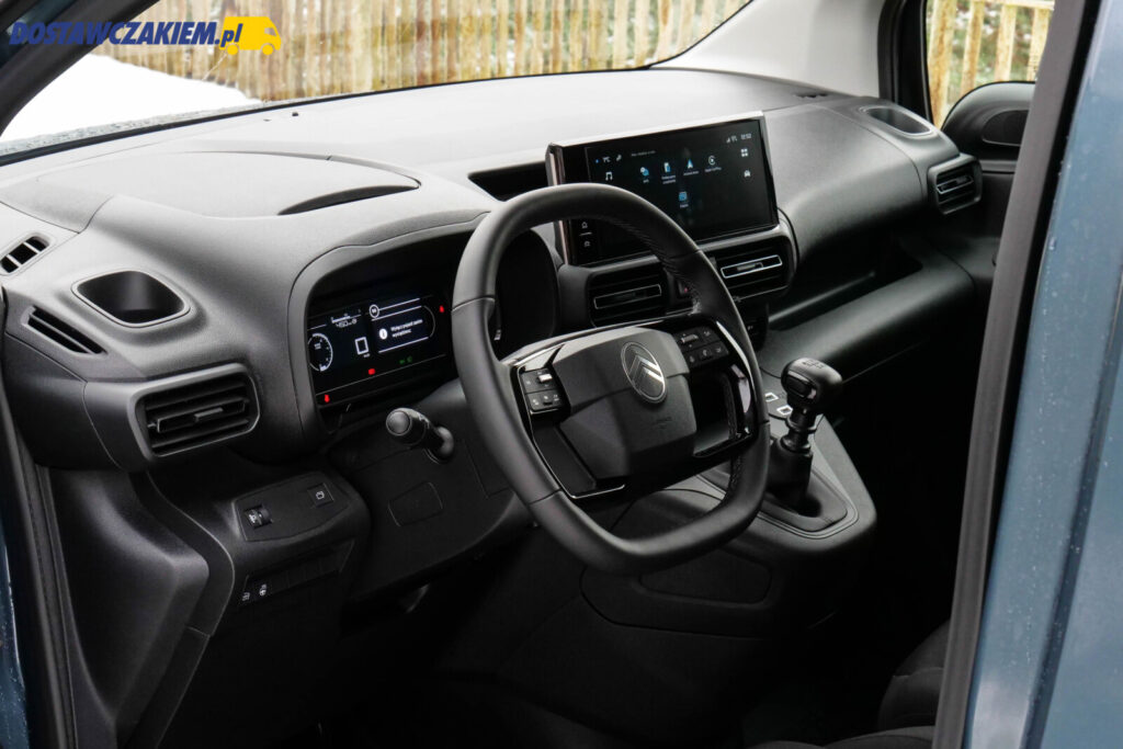 Furgonetka Citroena dobrze trzyma się drogi a w miejskich warunkach można docenić niewielkie wymiary zewnętrzne oraz dobrą zwrotność. Co prawda tylna kamera cofania umieszczona nad tablicą rejestracyjną szybko się brudziła i obraz na 10-calowym wyświetlaczu centralnym stawał się mało czytelny.
