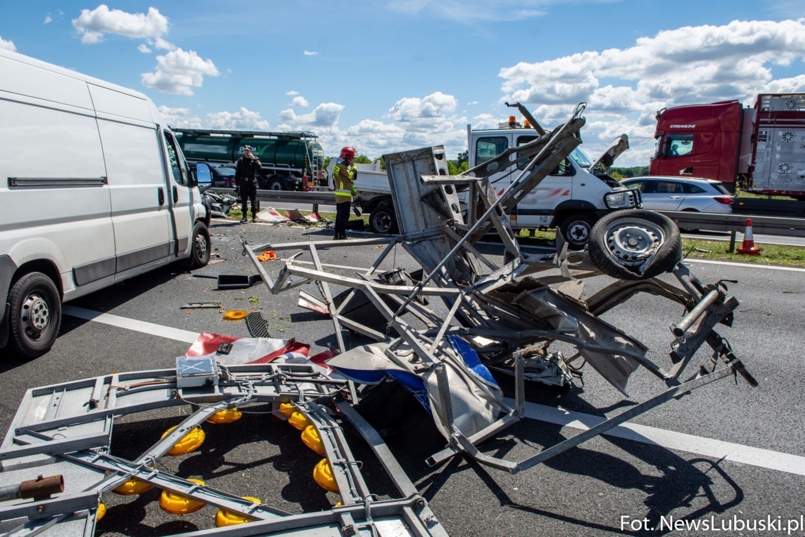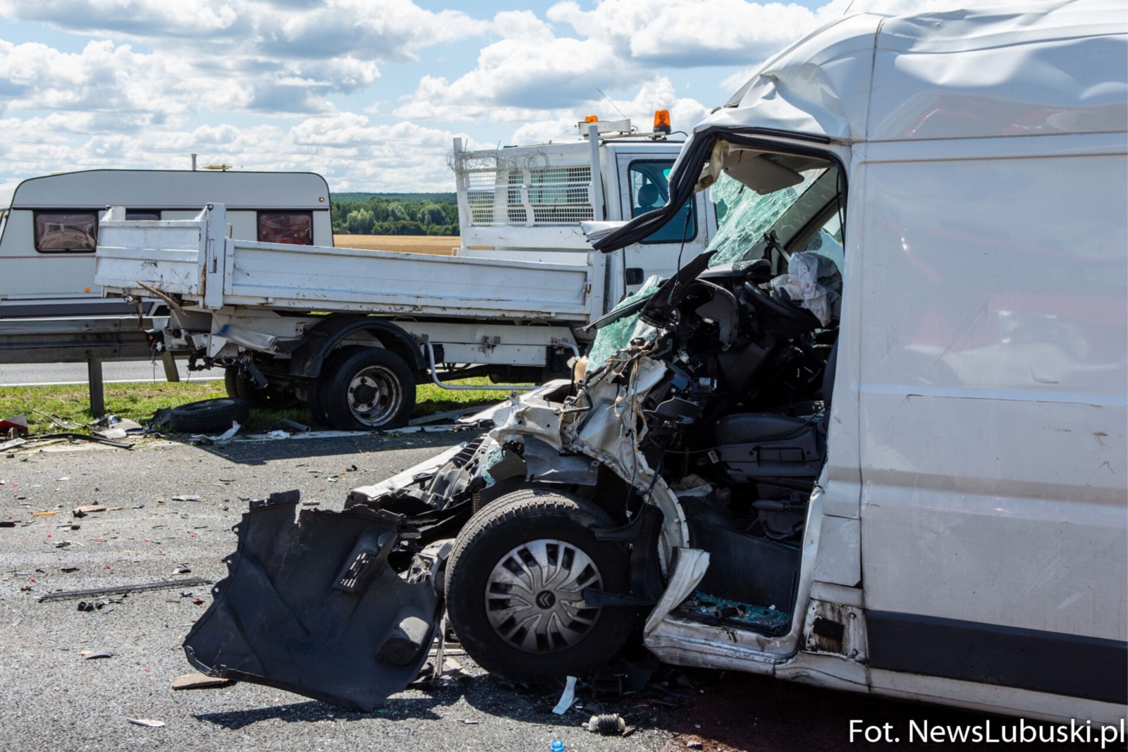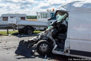 Jak informuje lokalny portal NewsLubuski.pl, na trasie w kierunku Zielonej Góry kobieta kierująca białym furgonem marki Citroen Jumper najechała w zestaw składający się z Renault Mascotta i przyczepy z oświetleniem ostrzegawczym.