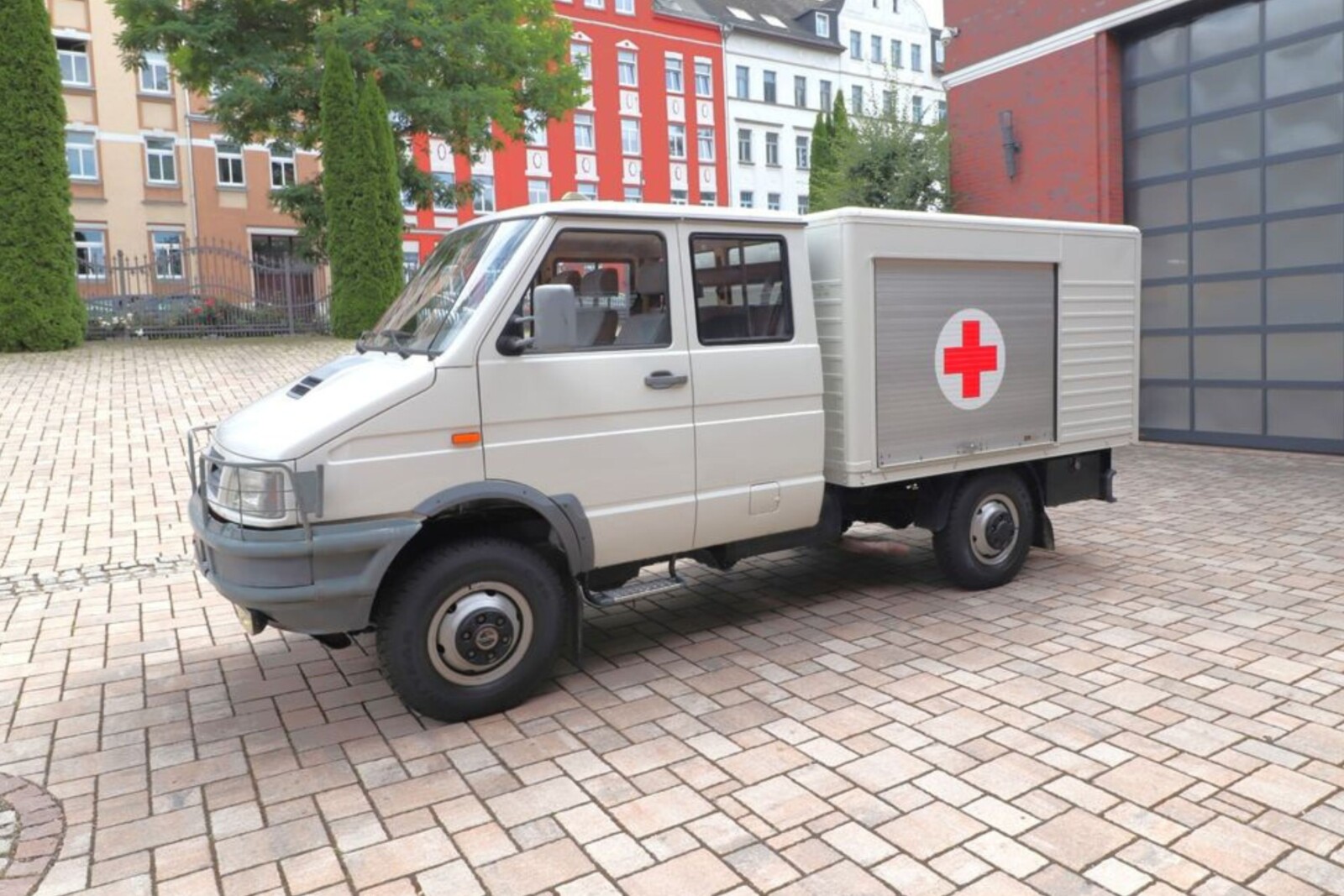 Ostatnio na serwisie mobile.de wypatrzyłem takiego 7 miejscowego TurboDaily z 1991 roku. Wizualnie utrzymany w niemal fabrycznym stanie pojazd był na stanie Deutschen Roten Kreuzes, czyli Niemieckiego Czerwonego Krzyża.