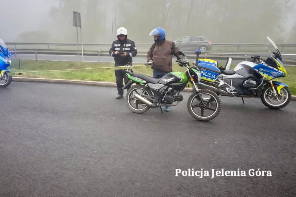 Kilka dni temu funkcjonariusze Ruchu Drogowego Komendy Miejskiej Policji w Jeleniej Górze patrolując na motocyklach drogę krajową nr 3 zwrócili uwagę na jadącego przez miejscowość Radomierz motorowerzystę.