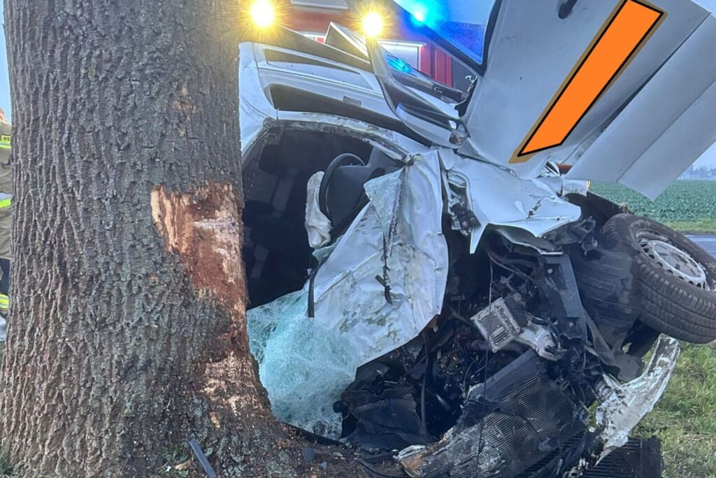 W minioną niedzielę na DW 263 Mercedes Sprinter zjechał z drogi i uderzył w drzewo. Kierowcę reanimowano. Na miejscu lądował śmigłowiec LPR.