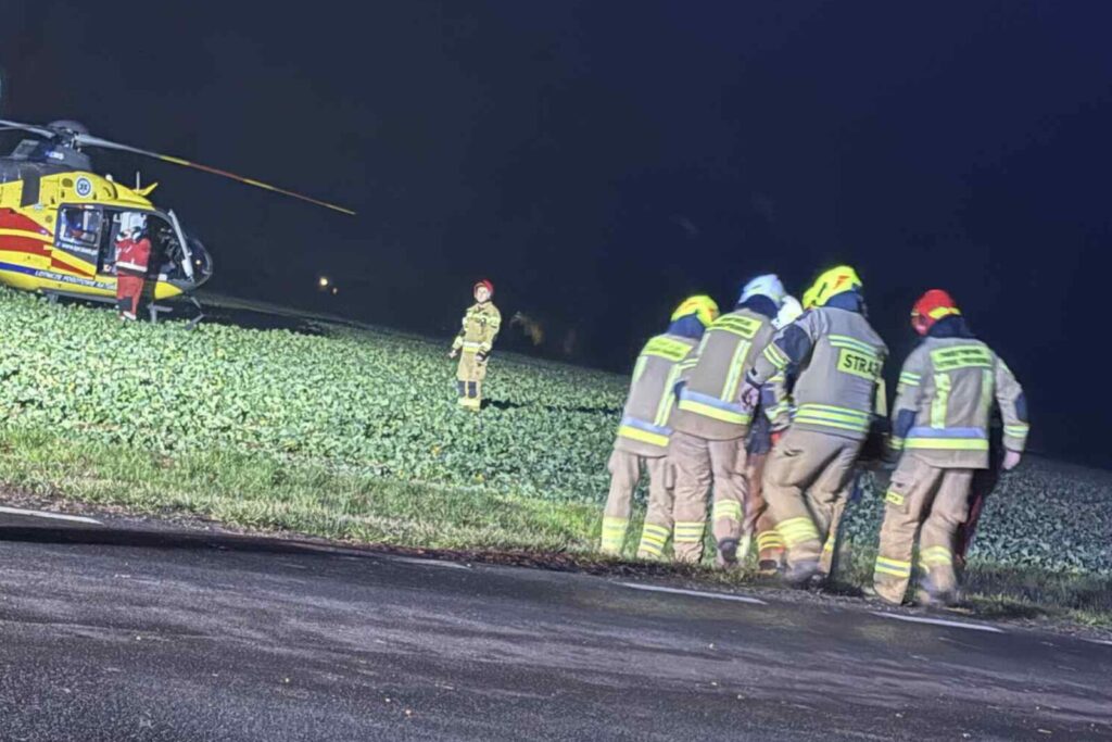 Po stabilizacji poszkodowanego przygotowano miejsce do lądowania śmigłowca Lotniczego Pogotowia Ratunkowego, który przetransportował rannego kierowcę dostawczego Mercedesa Sprintera do szpitala.