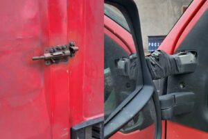 Także światła pozycyjne były niesprawne a prawdziwy szok wywołały tylne skrzydła: aby się nie otwierały podczas jazdy zamontowano zasuwkę i były zabezpieczone za pomocą pasów transportowych.