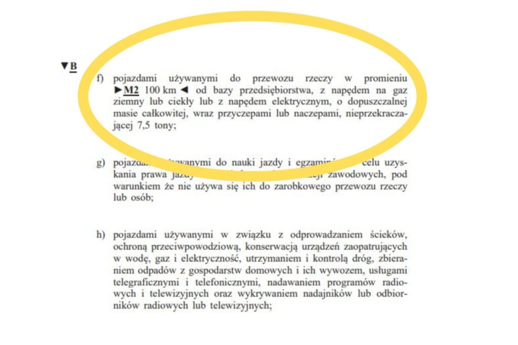 Jednak w obu wspomnianych przypadkach trzeba pamiętać, że dotyczy to tylko jazdy w promieniu 100 km od siedziby przedsiębiorstwa.