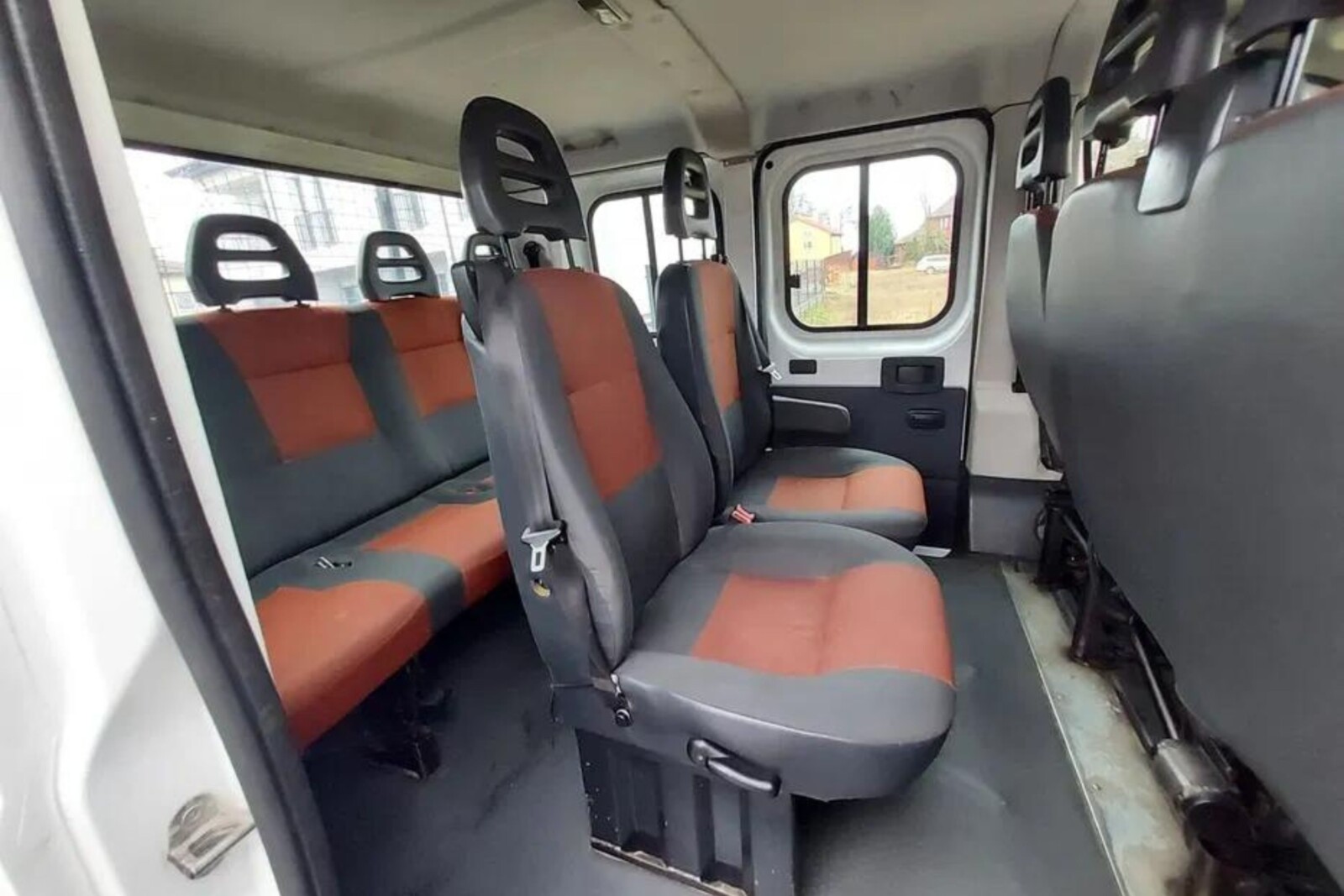 Tak wygląda tylna część 9-osobowej kabiny Fiata Ducato tricab. Według opisu wynika, że w aucie jest klimatyzacja.