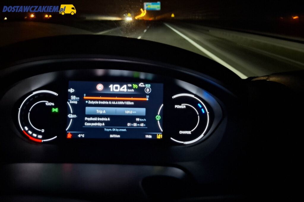 W przypadku elektrycznego „Dukata” sporej pojemności bateria trakcyjna to z jednej strony zaleta, bo nawet przy większym zużyciu energii w kWh/100 km pozwala przejechać przy temperaturach wahających się w granicach -5°C przejechać 220-230 km.