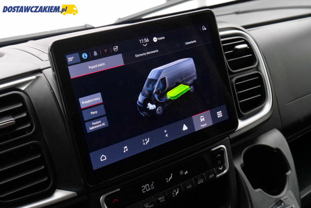Warto jednak wyjaśnić tutaj kwestię mocy i maksymalnego momentu obrotowego. Kierowca Fiat E-Ducato ma do wyboru trzy tryby jazdy: Eco, Normal i Power.