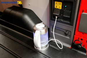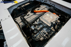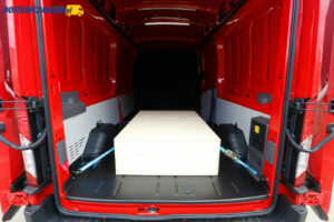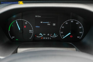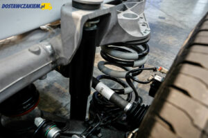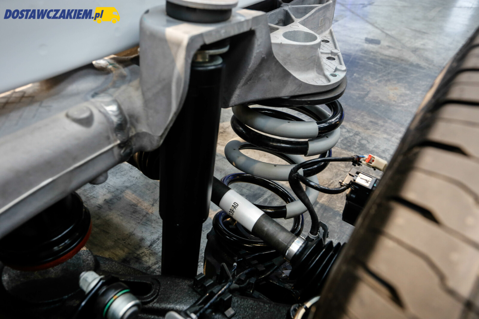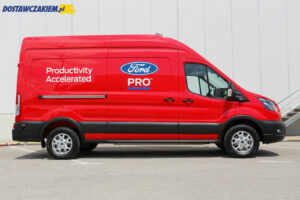 Przy okazji warto dodać, że na tylnej osi E-Transita nie pracuje zawieszenie piórowe tylko amortyzatory oraz sprężyny. Niestety, ciężko było podczas jazdy po dobrej jakości nawierzchni wyczuć pozytywne lub negatywne cechy takiego rozwiązania, więc może jeszcze kiedyś będzie mi dane sprawdzić na polskich drogach i przy większym niż 400 kg obciążeniu.