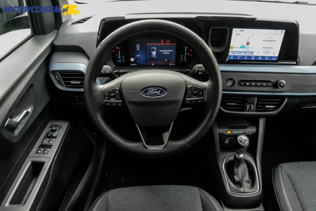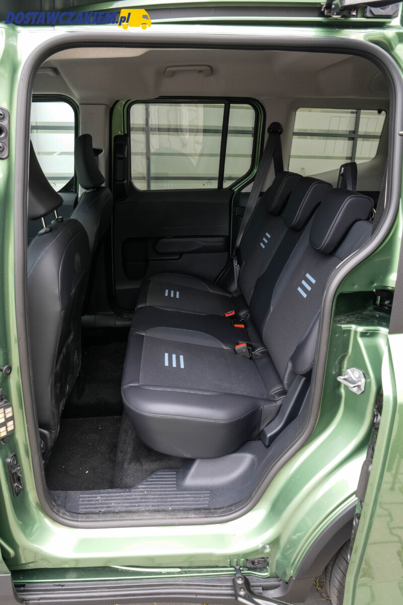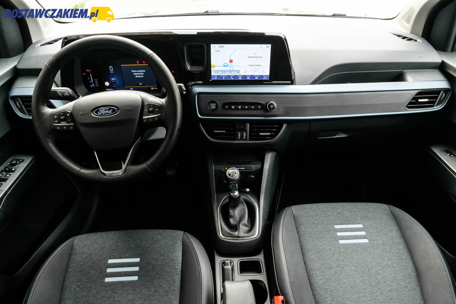 Najmniejszy z gamy kombivanów Forda oferuje na pewno sporo przestrzeni nad głowami – wysoko poprowadzony dach gwarantuje, że nawet 2-metrowy pasażer czy kierowca nie będzie narzekać, że ociera włosami o podsufitkę. Z przodu wygodnie podróżować nawet na dłuższych dystansach będą dwie dorosłe osoby. Podobnie z tyłu, bo kilkugodzinna podróż z kompletem 5 osób zarezerwować trzeba na wyjątkowe a wręcz awaryjne sytuacje.