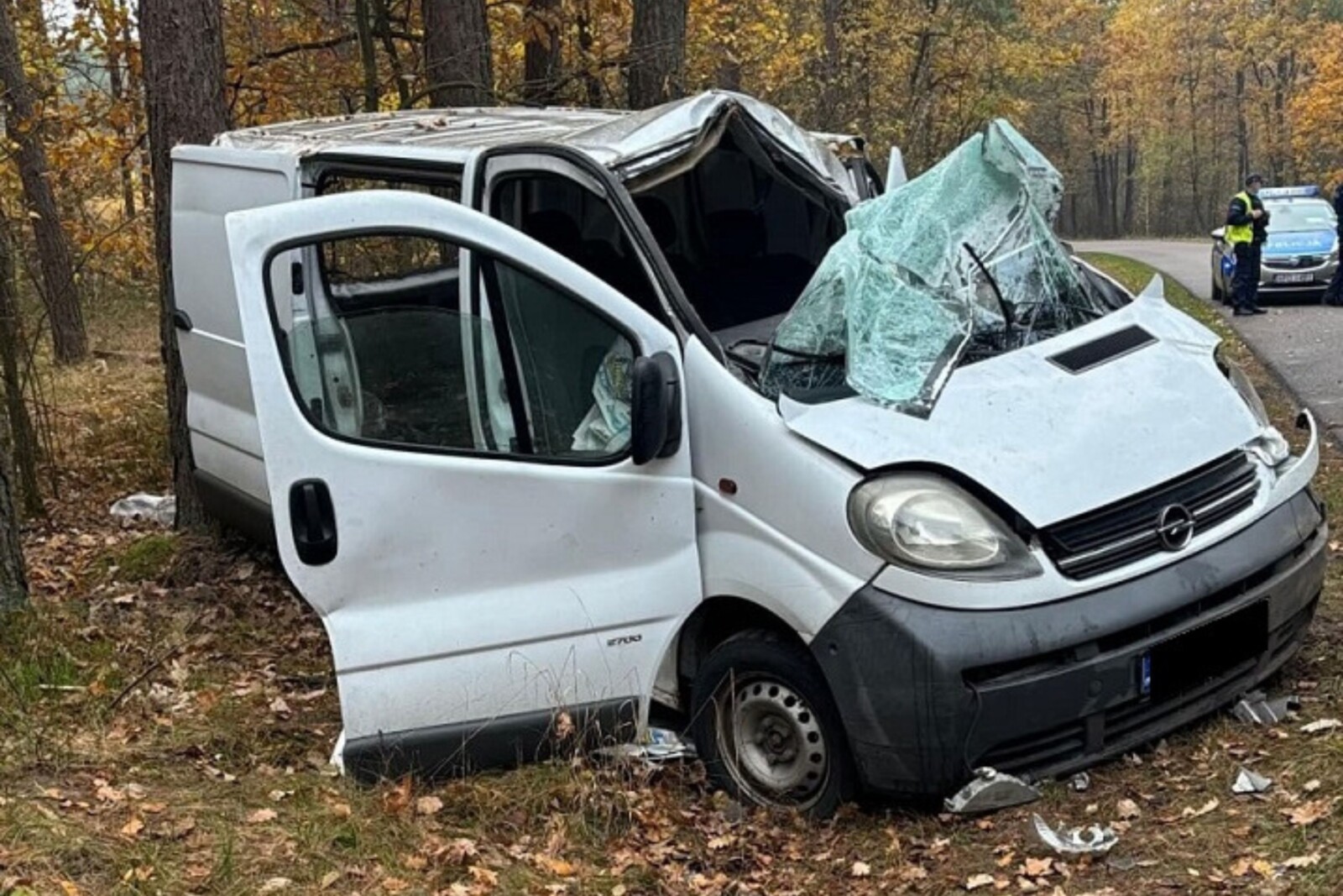 W konsekwencji furgon wpadł w poślizg a następnie po zjechaniu na pobocze uderzył w przydrożne drzewo.