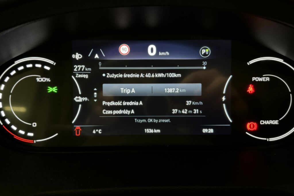 Jak widzicie na załączonych zdjęciach z cyfrowego wyświetlacza elektrycznej Toyoty, zużycie prądu jest różne i może dochodzić czasem do ponad 40 kWh/100 km. Trzeba jednak pamiętać, że X250, czyli także elektryczne wersje Fiata Ducato, Citroena Jumpera, Peugeota Boxera czy Opla Movano, posiadają sporą baterię trakcyjną.