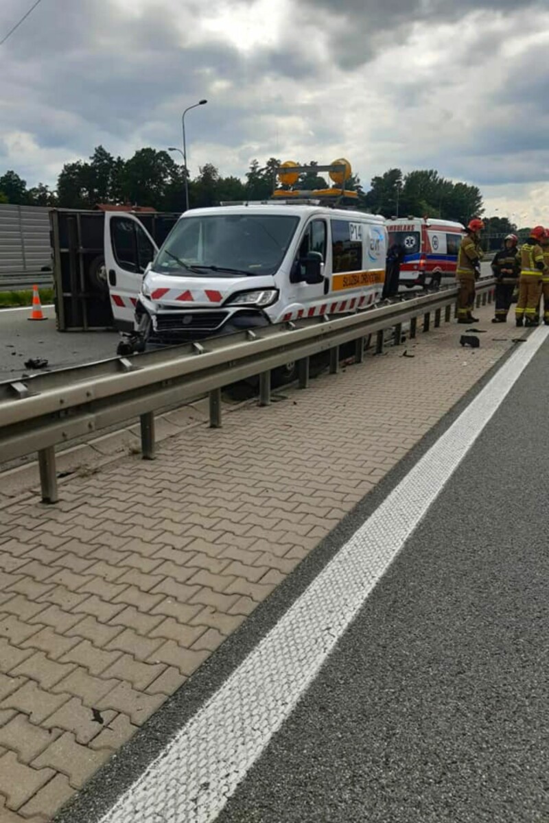 We wtorkowe popołudnie dostawcze Iveco Daily wjechało w Fiata Ducato służby drogowej na S52. Rannych zostały dwóch drogowców.