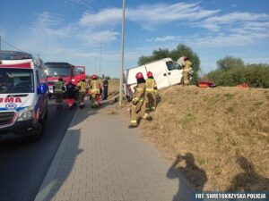 Na DK 79 pijany mężczyzna jechał Fiatem Ducato na czołówkę. Skończyło się dachowaniem. Okazało się, że kierowca busa miał ponad 3 promile.