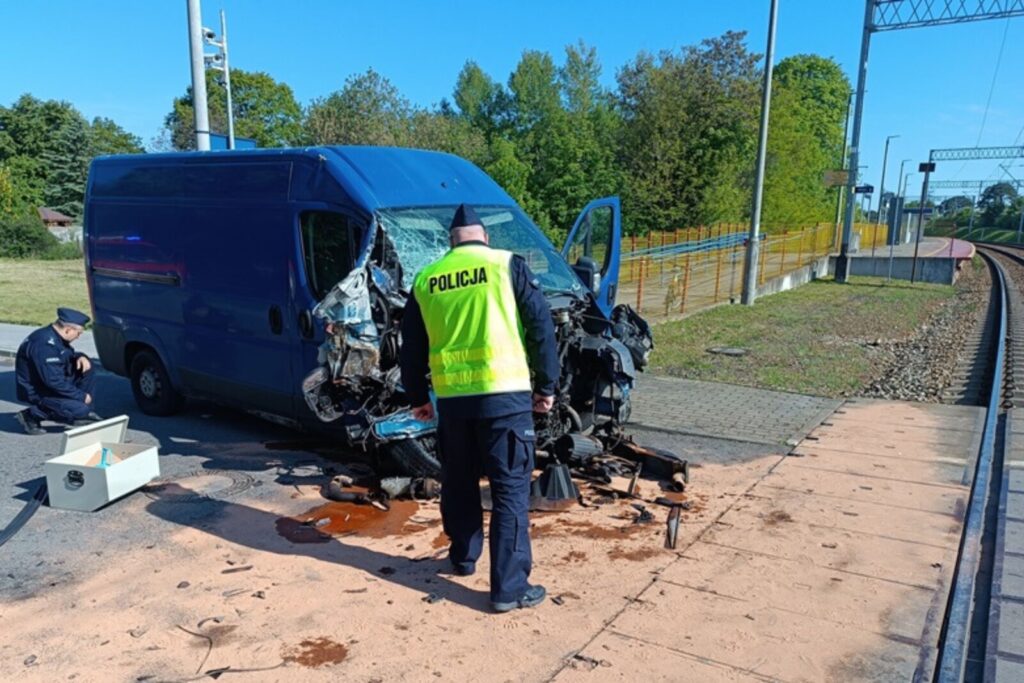 W Przyłęku Dużym pod Brzezinami (woj. łódzkie) kierowca dostawczego Citroena Jumper wjechał na tory pomimo zamkniętych półrogatek.