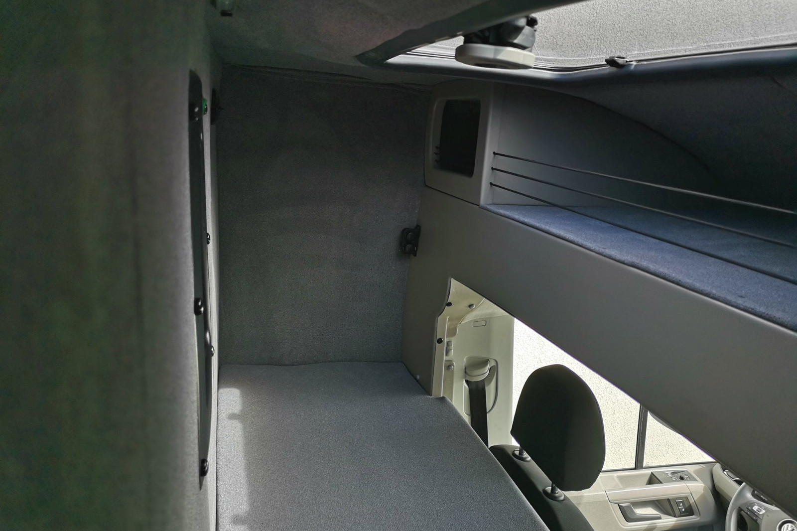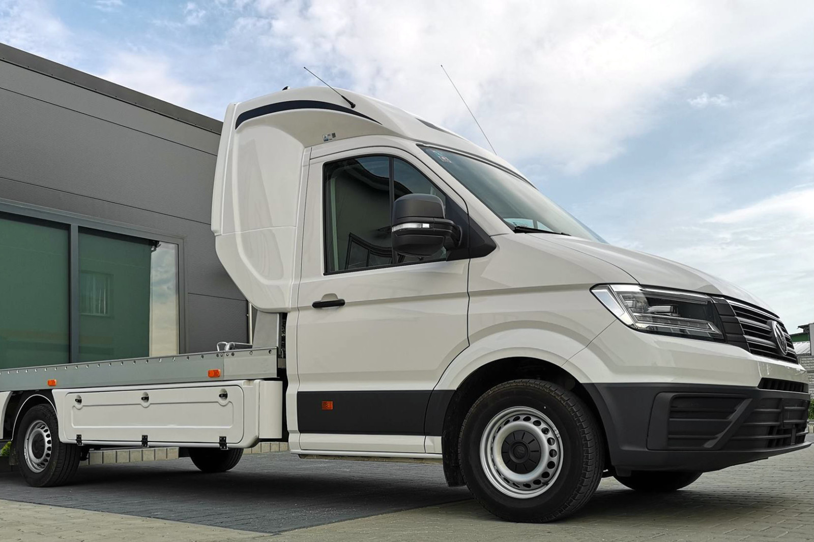 Tym razem kabina sypialna dedykowana jest dla Volkswagena Craftera II generacji z zabudową przystosowaną do przewozu pojazdów – w przypadku prezentowanego pojazdu producentem najazdu jest firma Jegger z Gostynia.
