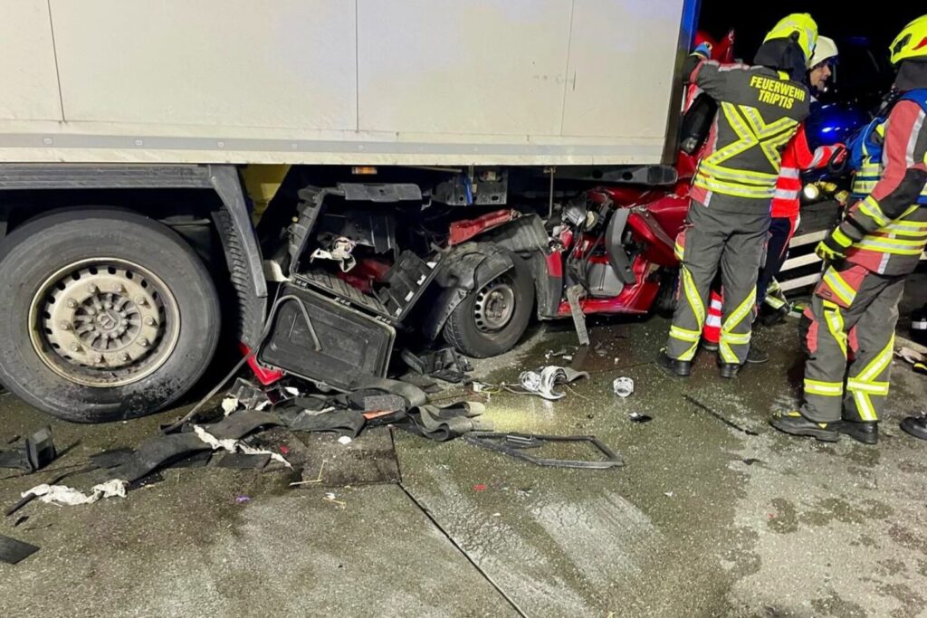 Na niemieckiej A9 doszło do pożaru samochodu osobowego. Niedługo później, w wyniku utworzonego zatoru, w tył naczepy najechała autolaweta.