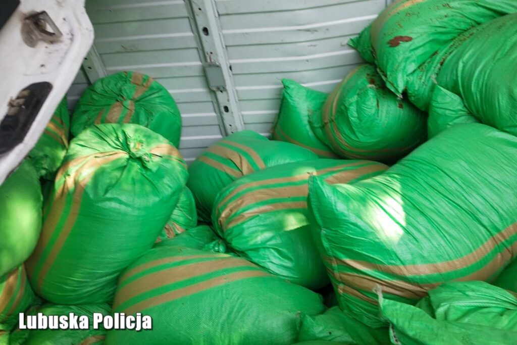 Mimo to zauważalnie 37-latek był poddenerwowany i speszony. Okazało się po pewnym czasie dlaczego kierowca busa tak się zachowywał. W ładowni „blaszki” znajdowało się niemal 1400 kilogramów nielegalnej krajanki tytoniowej w workach.