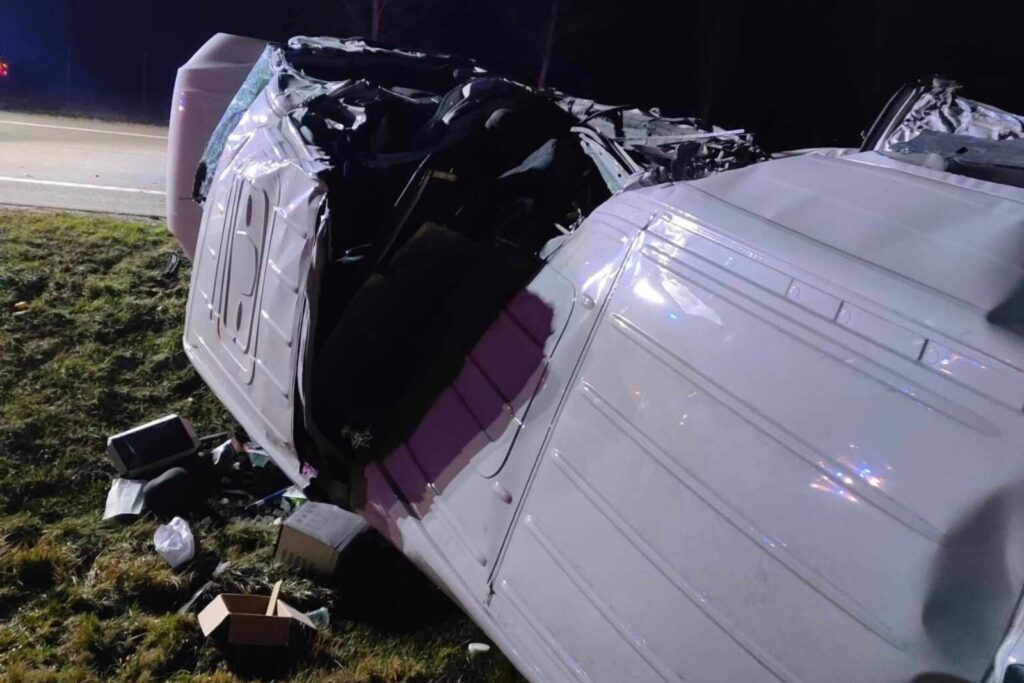 Według policyjnych ustaleń po godzinie 22:00 na trasie w kierunku Radomia prowadzący dostawczego Volkswagena Craftera z niewyjaśnionych jeszcze przyczyn zjechał na przeciwległy pas ruchu wprost przed nadjeżdżający ciągnik siodłowy z naczepą podkontenerową.