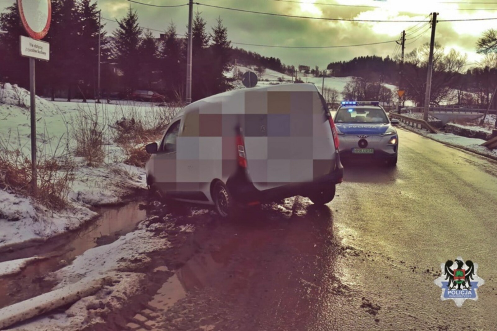 W niedzielę 6 lutego około 9.30 rano policjanci z Wałbrzycha otrzymali zgłoszenie o dostawczym aucie, którego kierowca wjechał do rowu w miejscowości Gostków i jest z nim utrudniony kontakt.