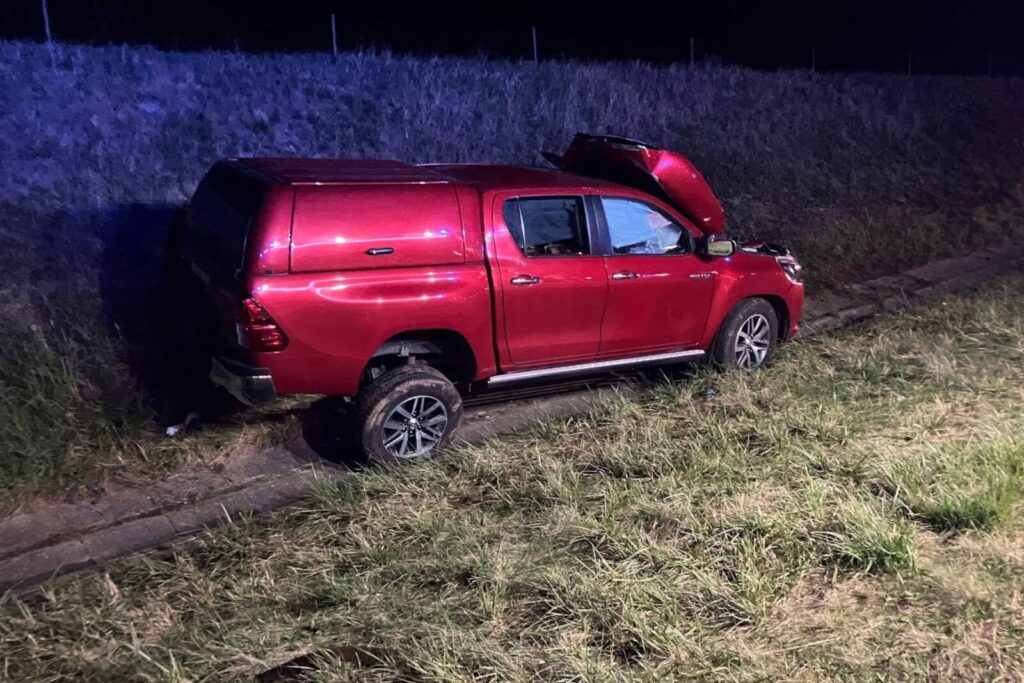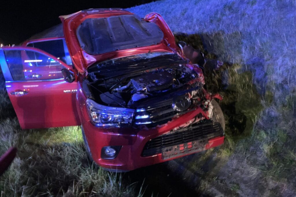 Toyotą Hilux podróżowały dwie osoby, które na szczęście nie odniosły żadnych obrażeń, ale potrącone zwierzę padło.