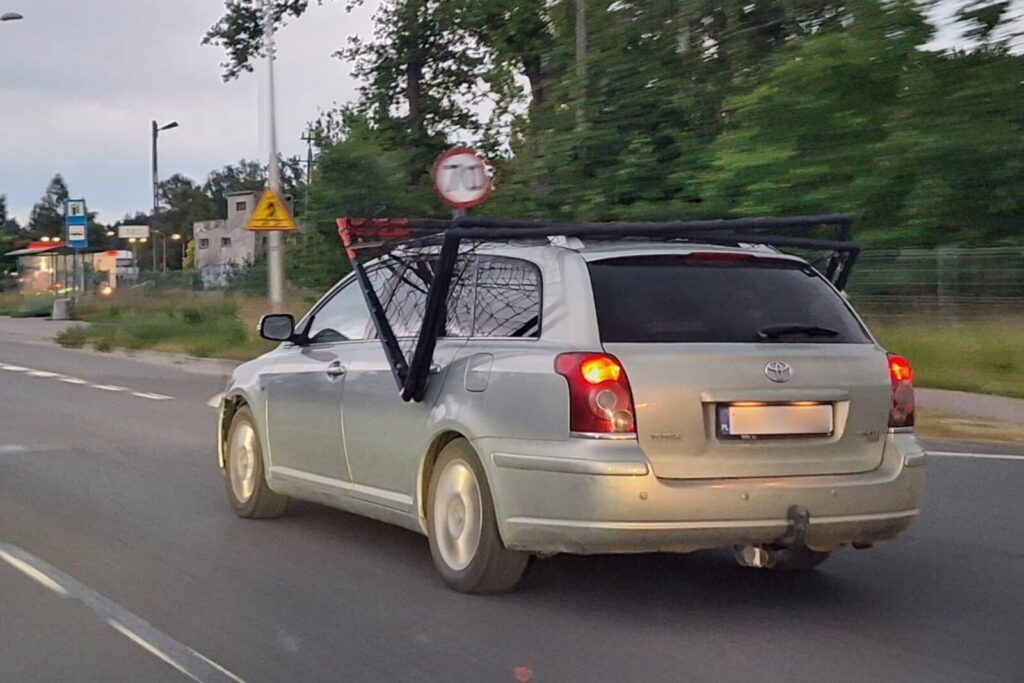 Nie wiem, czy byłoby do śmiechu, jakby po drodze zawieruszył się jakiś patrol „drogówki”, bo wtedy zapewne policjanci sprawdziliby czy ładunek na dachu został odpowiednio zabezpieczony przed przemieszczeniem na czas transportu. Do tego pytanie czy art. 61. pkt 6 Prawa o ruchu drogowym nie został złamany: