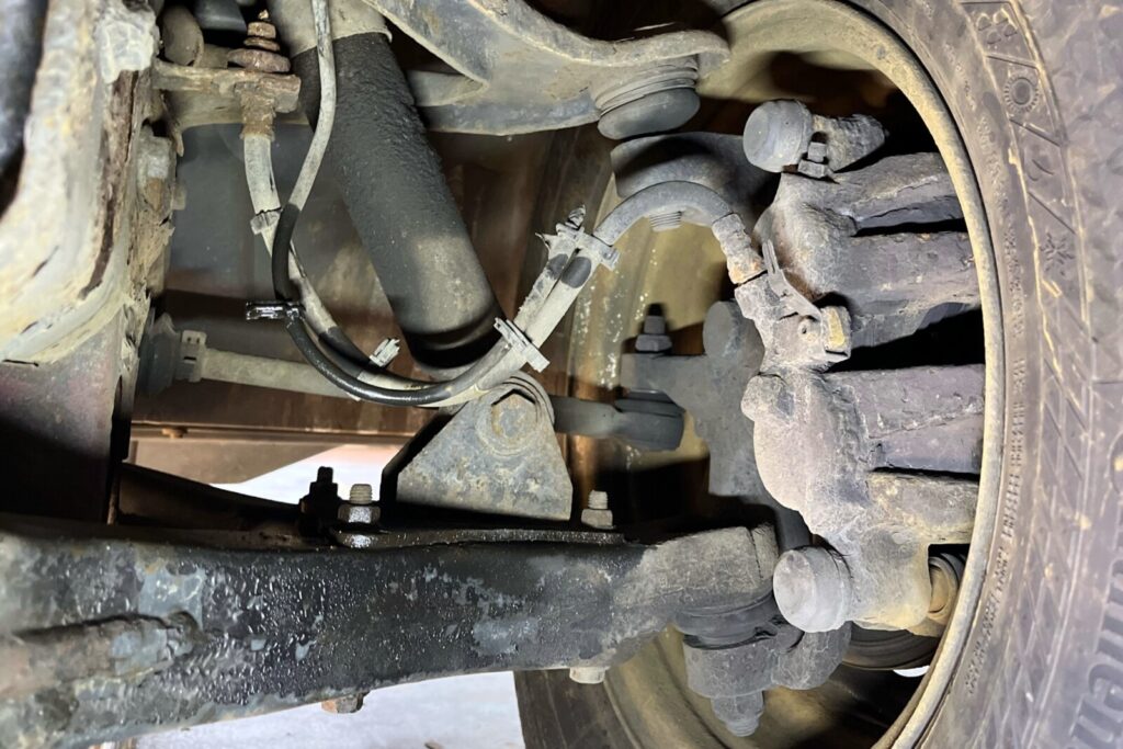 Łącznie w busie wykryto 56 usterek, w tym m.in. odłączony został prawy przedni hamulec. Do tego Daily było mocno przeżarte korozją – rdza znajdowała się między innymi na nadkolach, w progach a także na wzmocnieniach poprzecznych ramy i na samych podłużnicach. Warto zwrócić uwagę na piankę montażową, którą ktoś wypełnił dziury 🙂