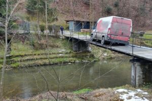 W połowie długości mostu pod furgonem zaczęły łamać się drewniane belki i Dukat zawisł na rzeką wsparty tylko o stalowe elementy konstrukcji.