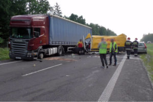 Do bardzo groźnie wyglądającego zdarzenia doszło w środę 12 lipca około 5:40 nad ranem na drodze ekspresowej S 22 w okolicach węzła Braniewo Południe. Jadący w stronę Elbląga kurierski furgon najechał na tył stojącej na poboczu naczepy (wystrzeliła opona w ciągniku siodłowym).