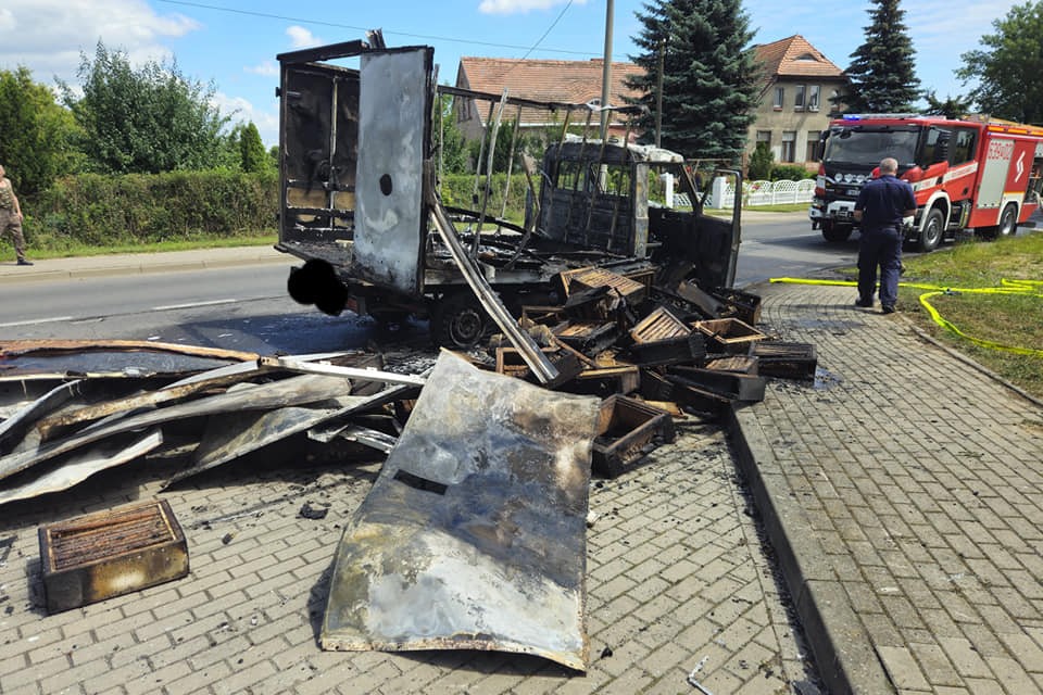 Pomimo sprawnie przeprowadzonej akcji gaśniczej, dostawczy Lublin spłonął doszczętnie wraz z ładunkiem pustych uli, na szczęście bez pszczół.