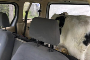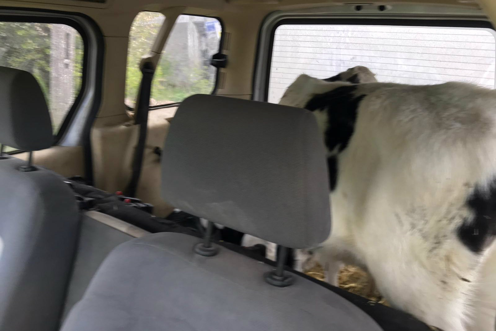 Zatrzymany mężczyzna małym kombivanem przewoził dwa cielaki – wpadł przez brak zderzaka. Ford Tourneo Connect miał też na tylnej osi dwie różne opony.