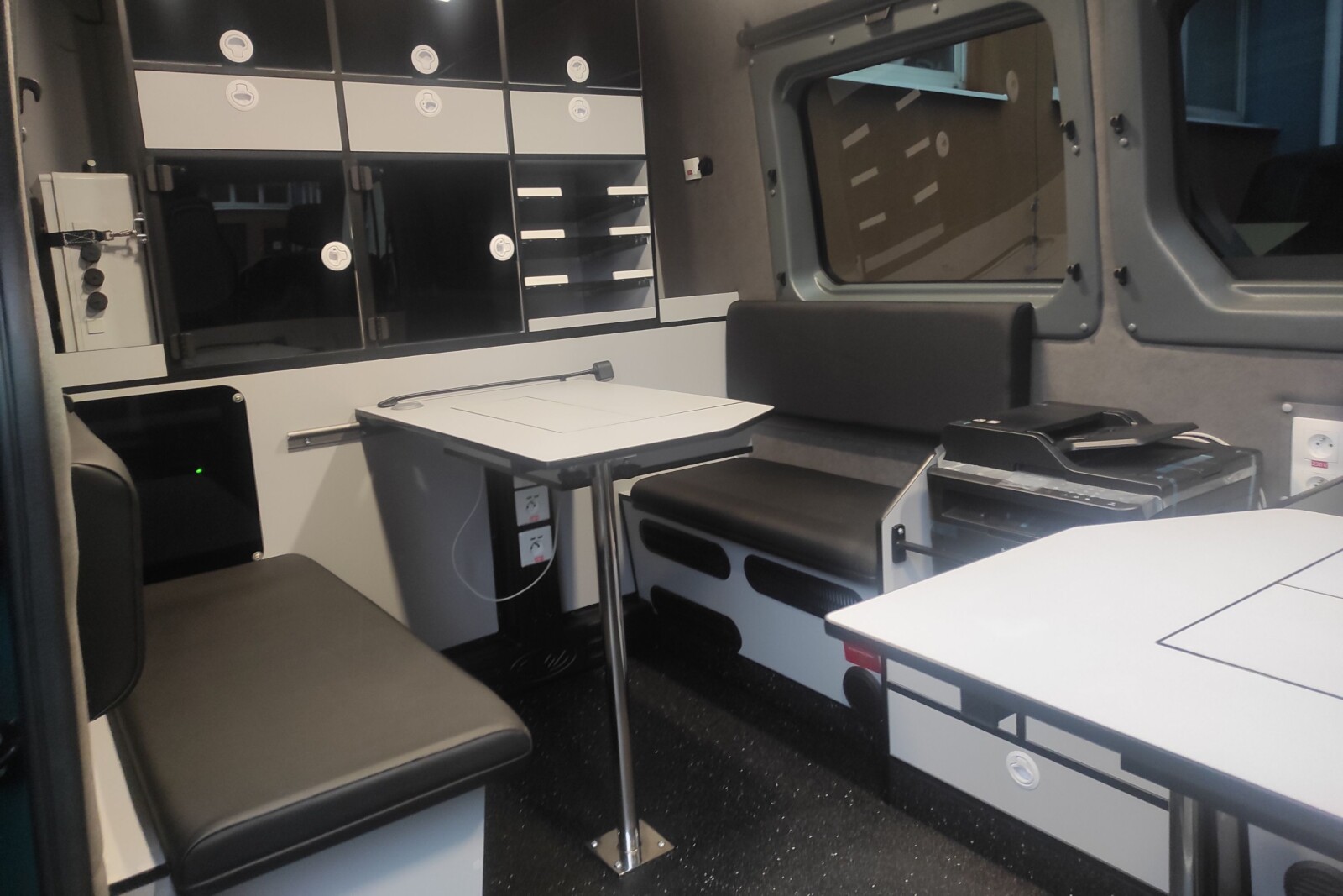 Poza zabudową biurową Mastery wyposażone zostały m.in. w przenośne wagi samochodowe czy dymomierze czy torby ratunkowe niezbędne przy udzielaniu pierwszej pomocy przedmedycznej.