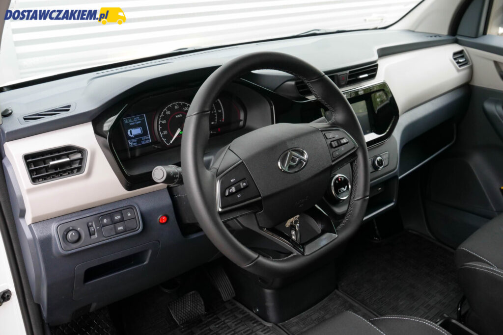 Bezsprzecznie chiński dostawczak ma za to bardzo obszerną kabinę – wydaje się, że pod tym względem e-Deliver 3 konkurować mógłby nie z małymi vanami pokroju typoszeregu K9 (Citroen Berlingo, Toyota Proace CIty, Fiat Doblo) a z modelami z segmentu średniej wielkości LCV.