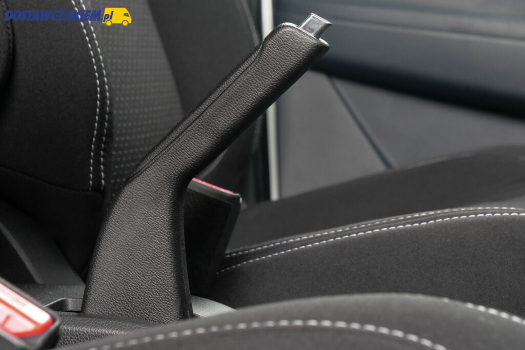 W przypadku aut elektrycznych automatyczna przekładnia zazwyczaj idzie w parze z elektrycznym hamulcem postojowym. A tutaj niespodzianka, bo e-Deliver 3 ma tradycyjną dźwignię „ręcznego”, co akurat może być dla wielu kierowców atutem a nie wadą.