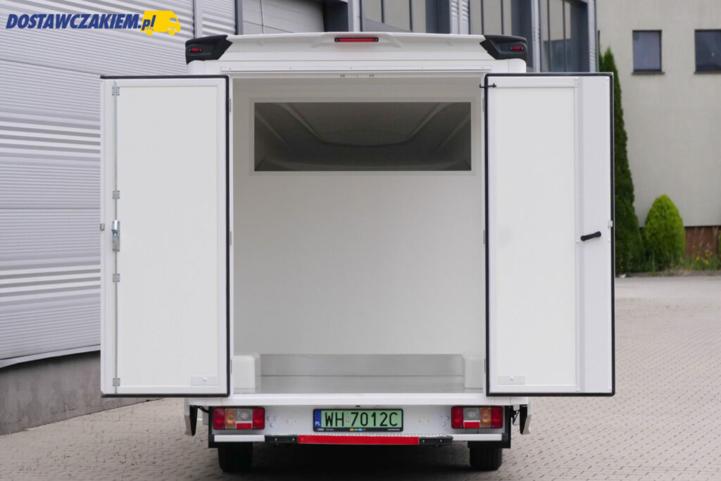 Mniejszy furgon oferuje ładownię o kubaturze 4,8 m3 a odmiana L2H1 już 6,8 m3. Jeżeli ktoś jednak potrzebowałby miejskiego vana pod kurierkę, albo do dystrybucji „spożywki” w obrębie większej aglomeracji, to warto właśnie rozważyć podwozie pod zabudowę.