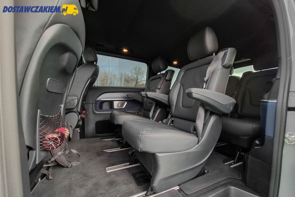 Testowy Mercedes EQV 300 to wersja 7-osobowa z układem foteli 2+2+3. Jeżeli chodzi o miejsce, to nie powinien narzekać ani kierowca, ani nikt inny podróżujący V-klasą na prąd.