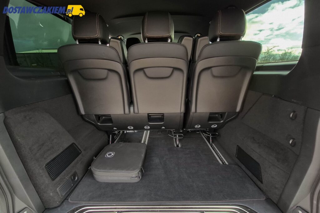 Dzięki możliwości przesuwania foteli na szynach można dostosować konfigurację kabiny pod konkretne potrzeby i dalej przestrzeń bagażowa pomieści kilka dużych walizek podróżnych, kilka plecaków i rowerek biegowy – producent podaje, że przestrzeń bagażowa dochodzi do 1030 litrów.
