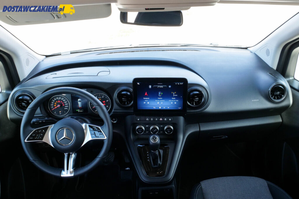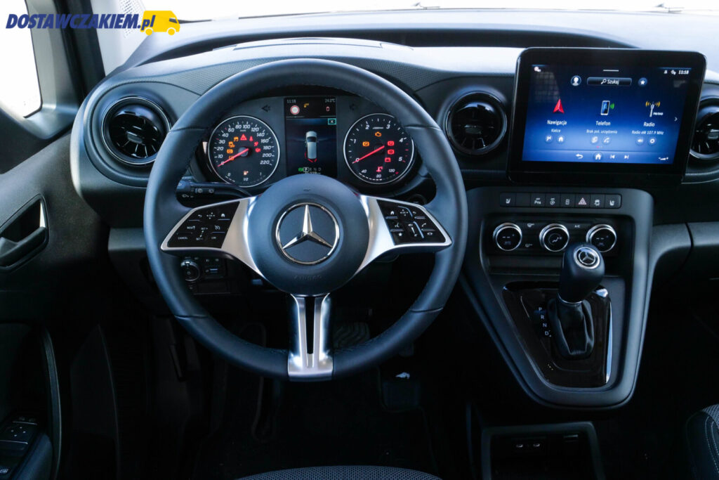 Jakość materiałów nie porywa, ale też nie ma tragedii. Analogowy zestaw wskaźników jest czytelny a kierownica Citana jest taka dokładnie, jak np. w większym Vito czy Sprinterze – dobrze leży w dłoniach a dwustopniowa regulacja sprawia, że niemal każdy kierowca znajdzie odpowiednią dla siebie pozycję do jazdy.