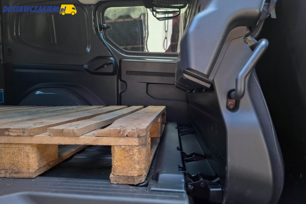 Na podpiętym na powyżej filmie pokazałem, że wystarczy pociągnąć za czerwoną opaskę przy lewych lub prawych drzwiach przesuwnych oraz zwolnić blokadę przy zewnętrznej części oparcia kanapy i mamy nie 5-osobową brygadówkę a furgonetkę mieszczącą 2 europalety.