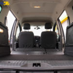 Po złożeniu oparć kanapy (składana w proporcjach 1/3 i 2/3) uzyskujemy niemal płaską podłogę. Do tego dzięki standardowym prawym i lewym przesuwnym bocznym drzwiom mamy możliwość łatwego dostępu do przewożonego ładunku.