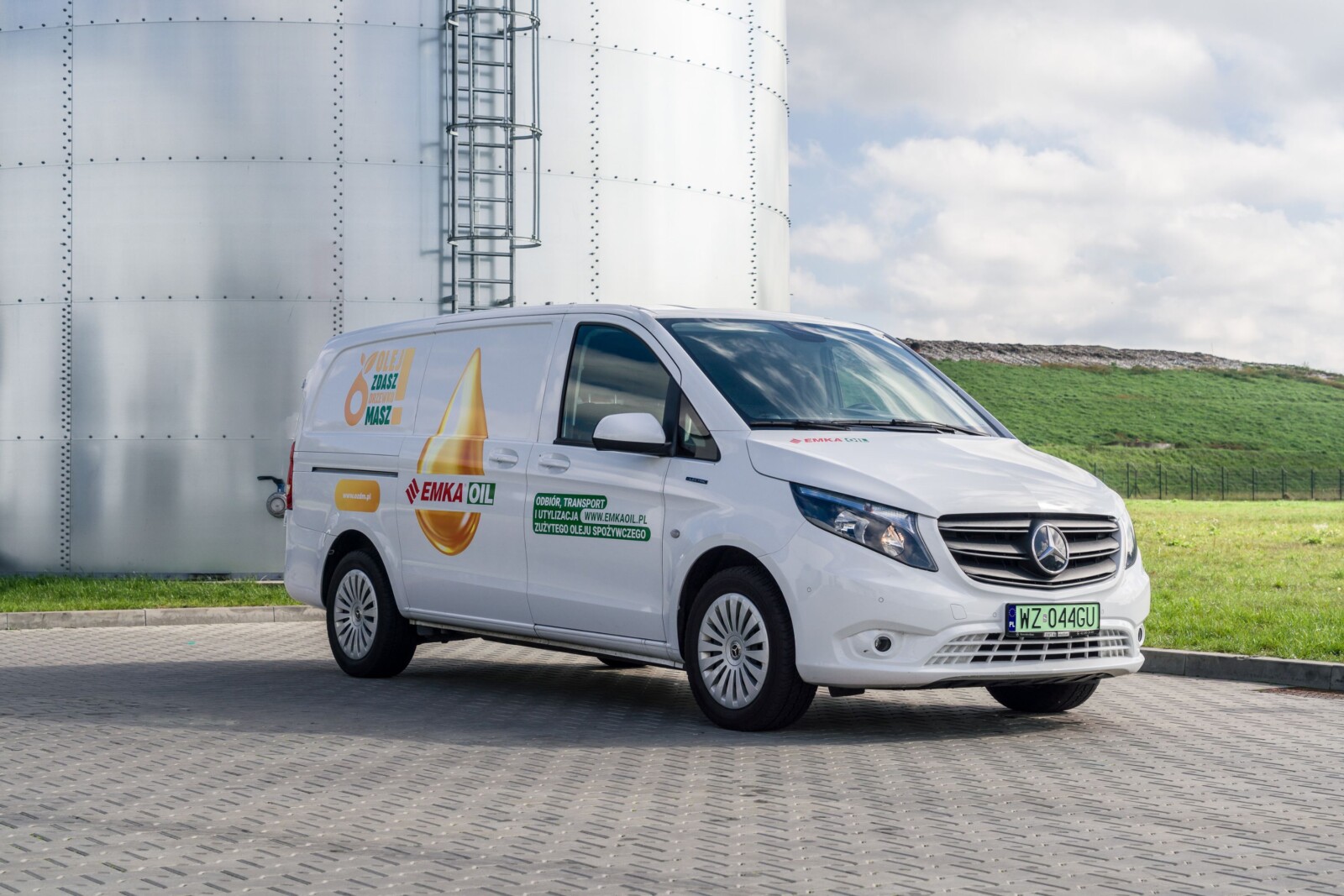 Furgon z baterią 60 kWh od 2022 roku pracuje w spółce córce Emka Oil w Kędzierzynie Koźlu i służy do zbiórki UCO (z ang. Used Cooking Oil), czyli zużytego oleju spożywczego. Biały eVito przejechał przez ostatnie półtora roku już przeszło 30 tys. km.