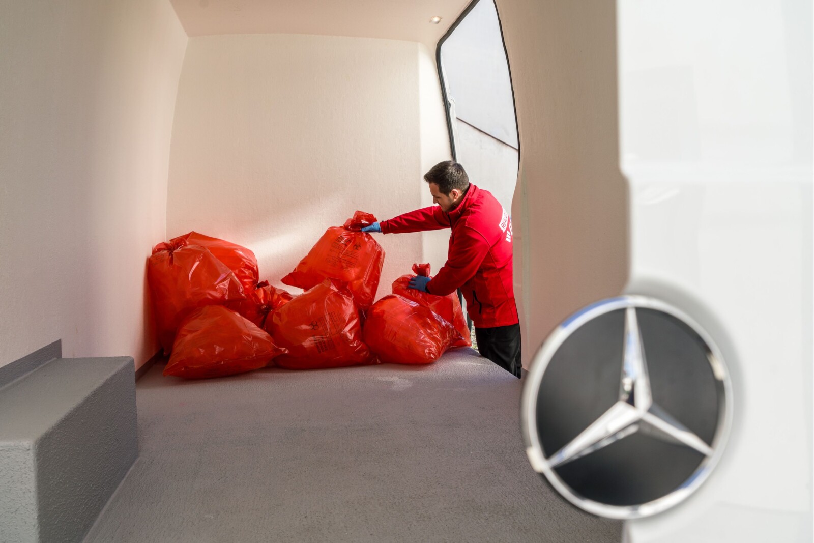 Mercedes eSprinter w barwach firmy Emka służy do odbioru odpadów medycznych z około 30 warszawskich placówek, w tym szpitali, przychodni, klinik weterynaryjnych, salonów tatuażu czy gabinetów stomatologicznych. Bezemisyjny lokalnie dostawczak pokonuje podczas takiej trasy około 250 km dziennie.
