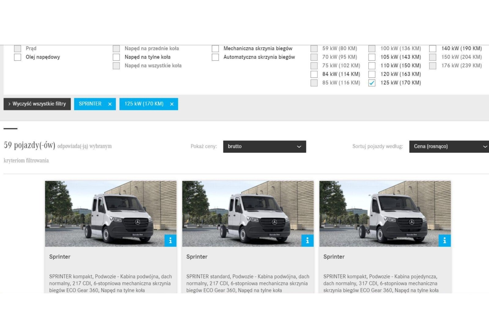 Konfigurator już pokazuje wersje 150 oraz 170 KM – Mercedes Sprinter z silnikiem 2.0 wchodzi do oferty i niebawem będzie dostępny w salonach.