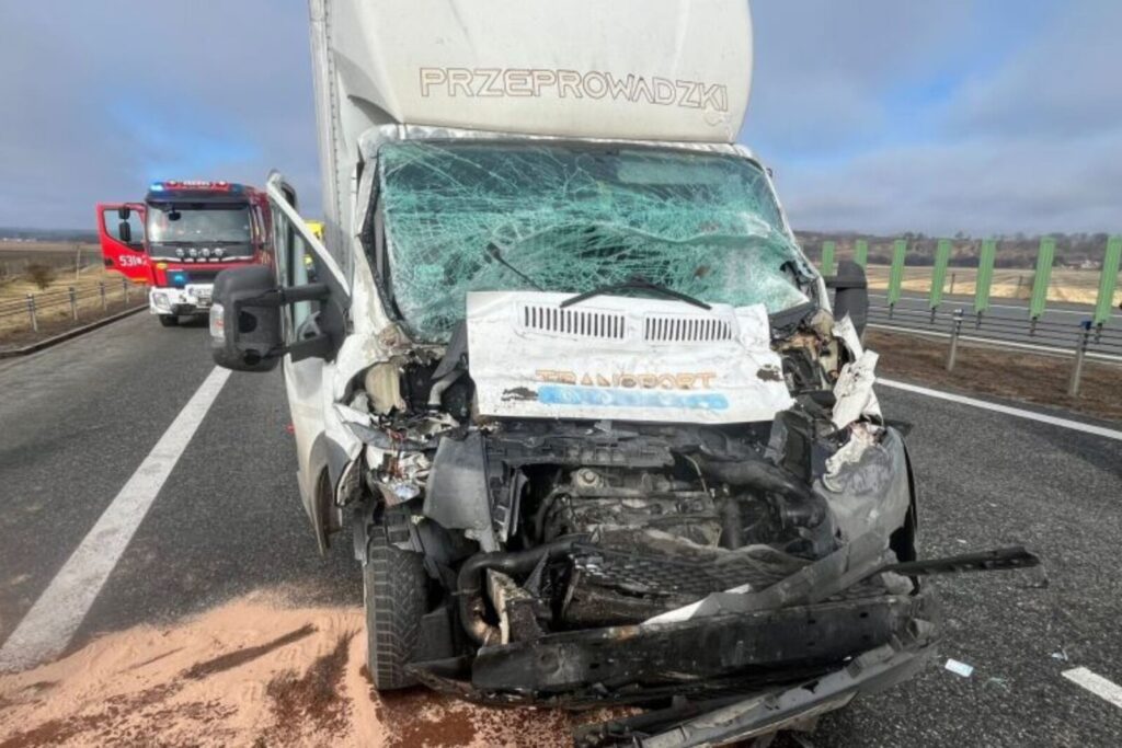 Wczoraj na „A1-ce” dostawczy Jumper uderzył w jadący zestaw. Kierowca busa został ranny i trafił do szpitala.
