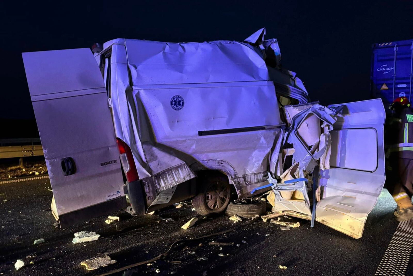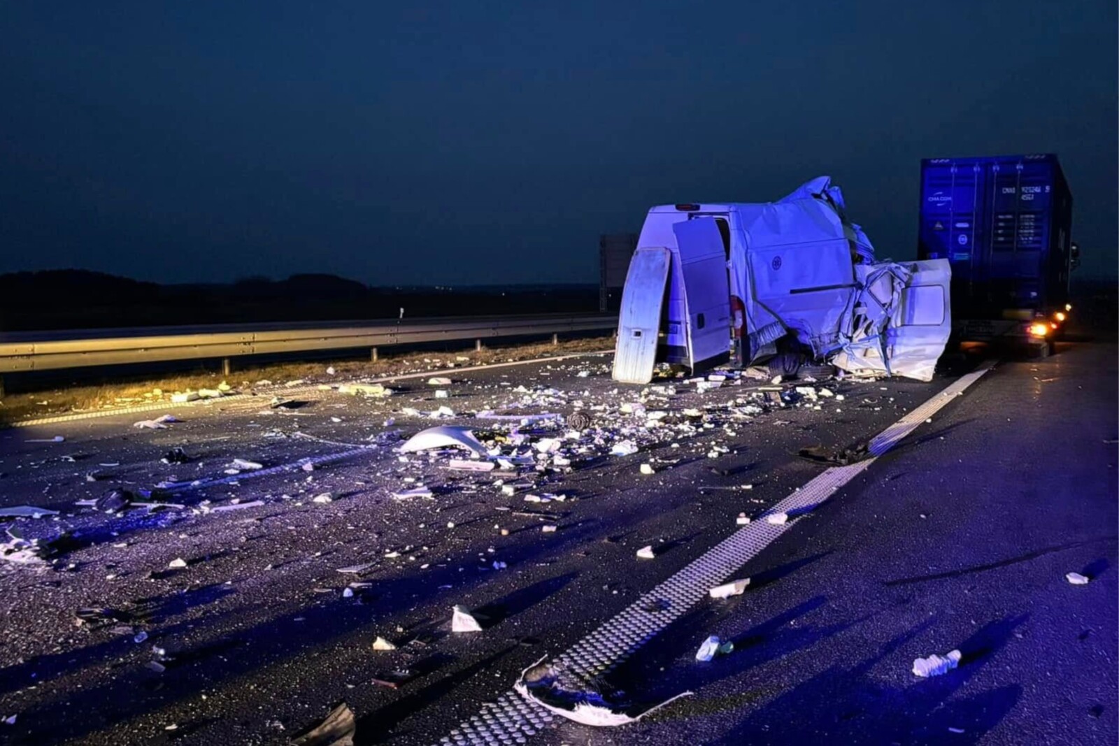 Jak informują lokalne media, w wyniku uderzenia przystosowanego do transportu medykamentów busa w lewy tylny róg naczepy przewożącej kontener, ranny został prowadzący dostawczaka.